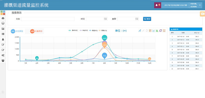 形象、直观地为管理部门提供灌渠实时流量查询、报表管理等服务,确保管理人员迅速、及时、准确地掌握灌渠的流量、雨量信息,为农田水利管理工作提供有效支撑,提升农田水利信息化水平。