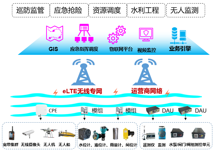 在灌区海量数据的传输与接入方面,华为拥有世界领先的无线通信技术。5G技术的浪潮也将从城市涌向更加生机勃勃的渠边地头,通过华为eLTE无线专网,可满足灌区无线视频监控、应急通信、多媒体调度、海量数据回传、移动办公、水利物联等业务需求,一网多用,有效解决在多业务场景下的灌区各类信息化业务开展。另外华为云网络,在接入、云内、云间三个维度进行了全方位的端到端的优化,可实现真正的全链路极速稳定网络,为灌区网络畅通保驾护航。所有的感知端数据包括水情结构化数据以及视频等非结构化数据均可有序传输进入华为云平台,华为云平台可加持ROMA数据融合平台对海量回传数据进行清洗和分类,实现灌区数据的有效整合且用户可基于需求进行自动编排,为后续数据开发利用提供支撑。