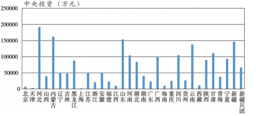 2018 年各省份高效节水灌溉项目中央投资情况(图片来源:2018年农村水利水电工作年度报告)