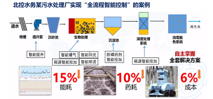 北控水务发布了“污水厂数字双胞胎”概念版,以实际污水厂为蓝本,整合静态数据、动态数据和生产管理数据,通过机理模型分析和大数据分析等方法,将污水厂过去、现在和未来的状态进行直观的呈现和预测,并结合专家系统提出建议,为运营管理提供决策支持,并实现高度保障、管理高效、成本优化和产能挖潜的目的。为实现北控水务高效卓越运营管理提供了支撑,通过全流程的智能化控制,北控水务运行的很多污水厂实现了节能降耗,实现了整体成本的降低。