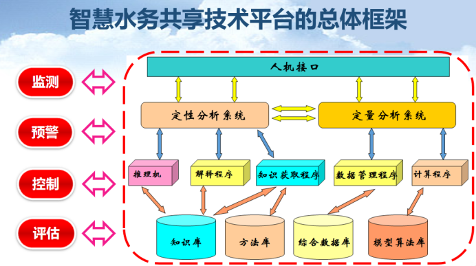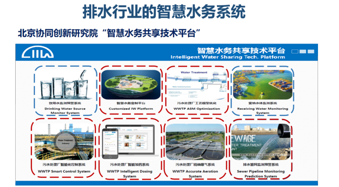 清华大学和北京协同创新研究院在“智慧水务共享技术平台”的建设上做了很多探索,包括饮用水源安全管理、污水处理优化运行、排水管网优化运营和受纳水体安全管理四个板块,智慧水务共享技术平台的这四个板块通过一个用户友好的网络平台实现水务领域共性先进技术的资源共享。